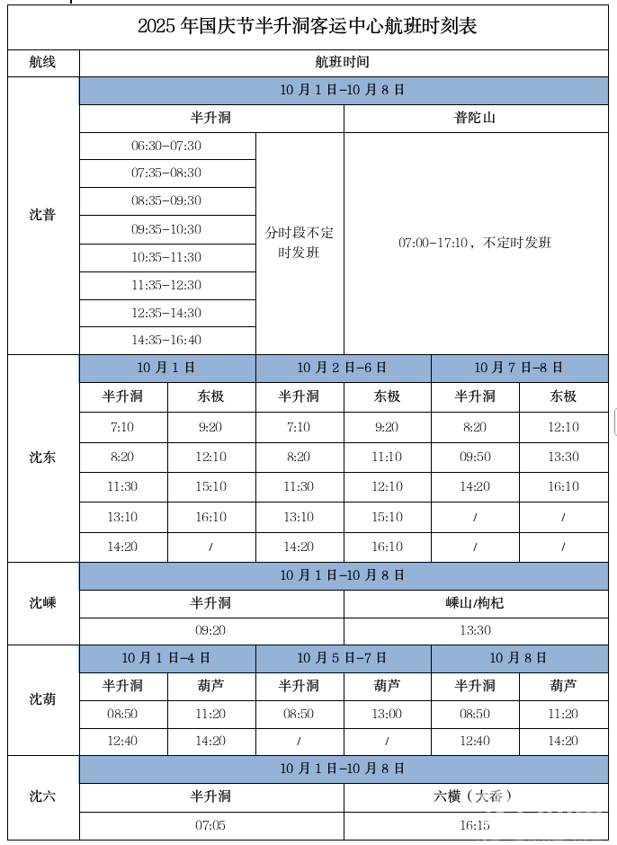 半升洞客运中心各航线航班时刻表