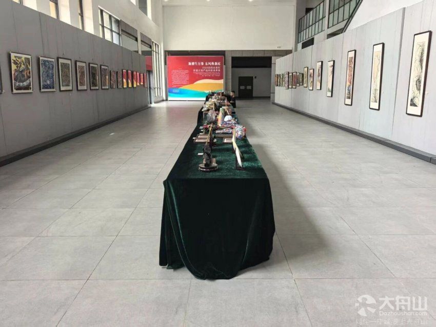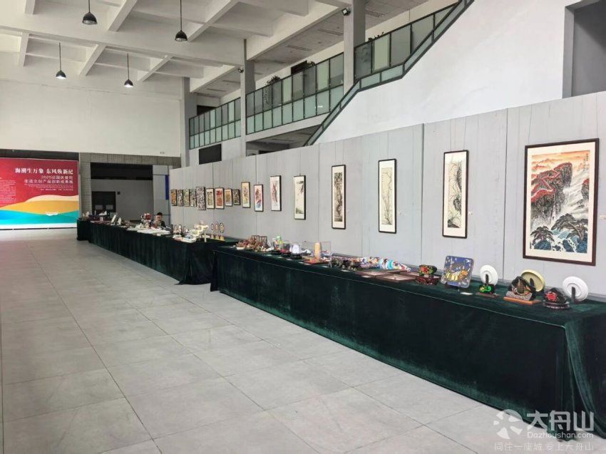 本次展览集中展示近年来普陀非遗手工文创产品的创新成果。汇聚手工布艺、盘扣、渔民画、玉石雕刻、核雕、铜雕、手工钩织、渔民画衍生品、赏石艺术、船模制作、扎染、陶艺、绳结、香道等十余类非遗项目。这些作品既承传统技艺之精髓,又注当代审美之新意:手工布艺在图案设计上融入现代视觉语言,盘扣从服饰配件转型为艺术摆件,船模制作在保留古法工艺的同时开发出微型文创系列,渔民画衍生品更从平面艺术走向实用器物。每一件展品都是传统与当代的精彩对话,展现非遗技艺在形式与功能上的创造性转化。