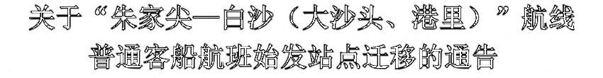 1.“朱家尖—白沙(大沙头)”航线高速客船航班仍在朱家尖客运中心始发。