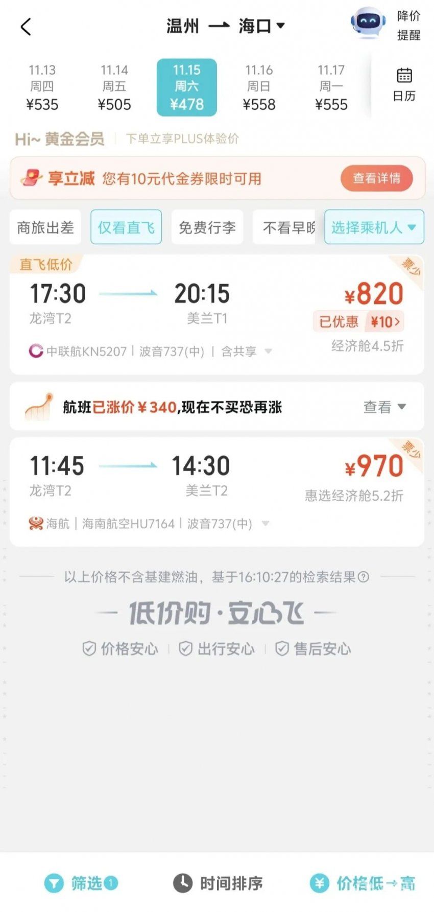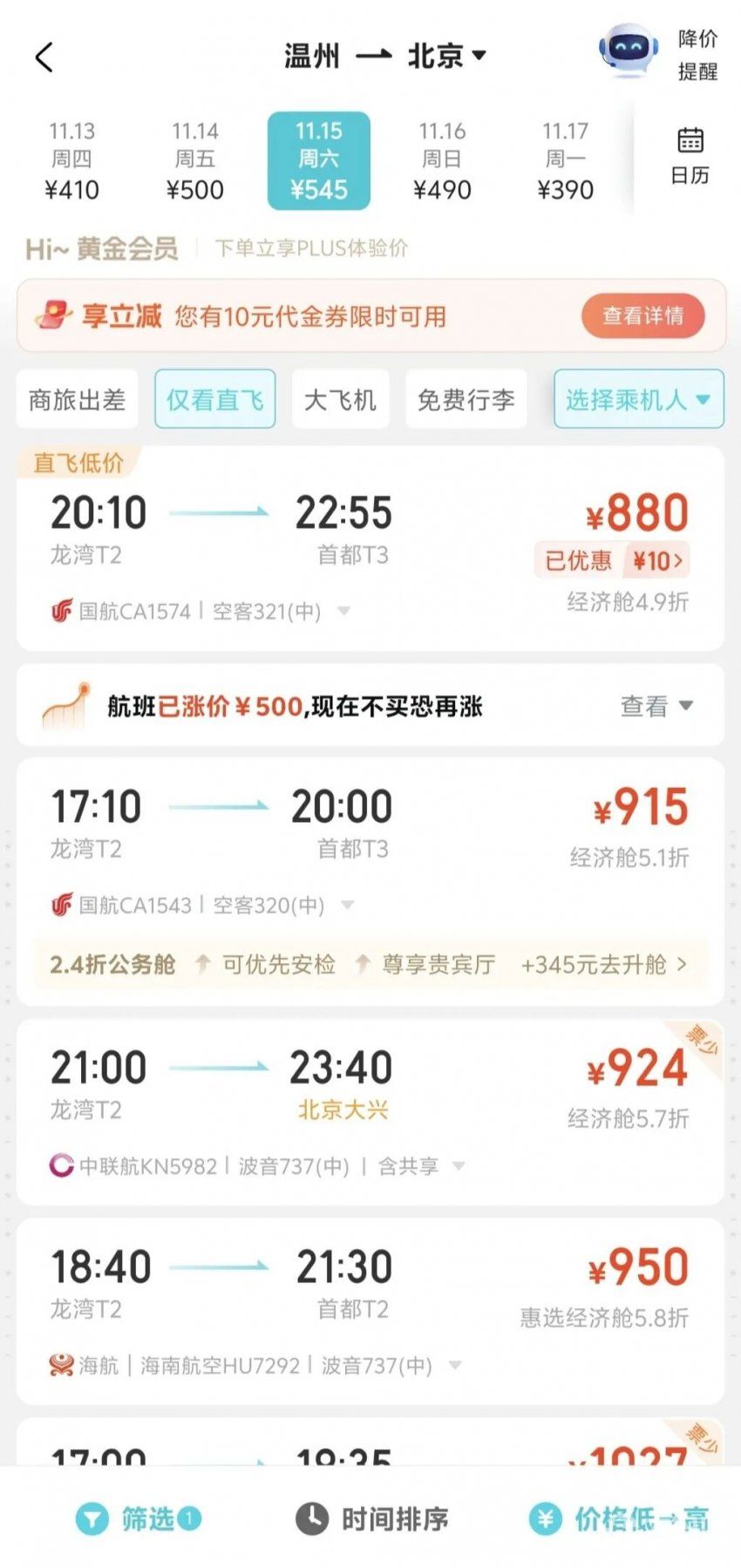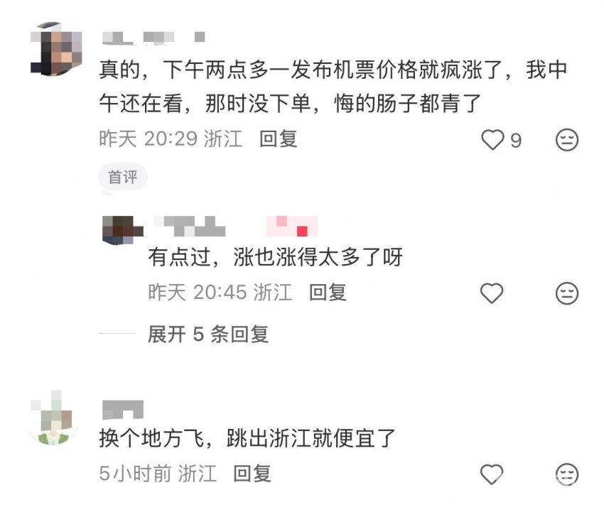 热门城市机票价格暴涨