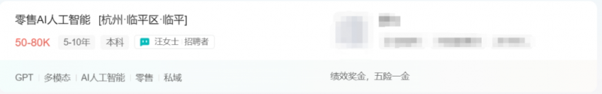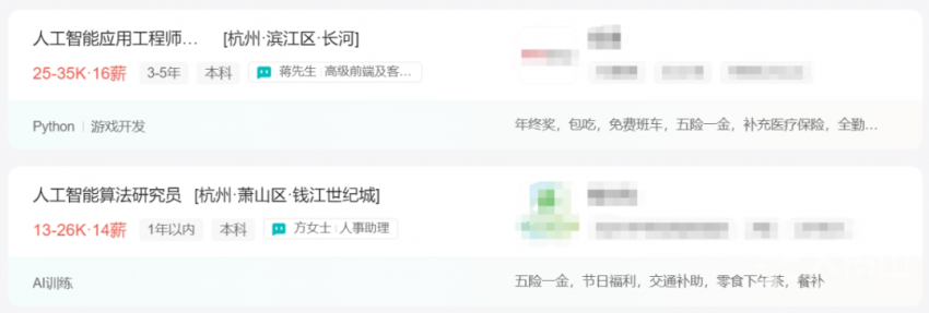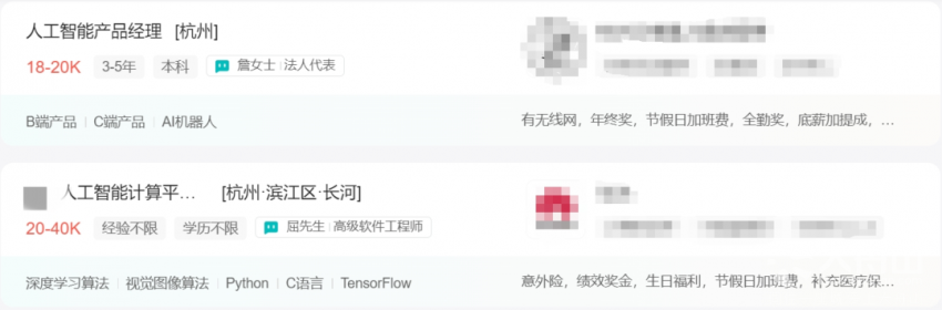 经小编查询,浙江招聘的人工智能相关岗位,月薪在2万元左右的不少,最高可达8万元/月。