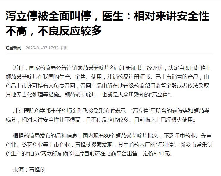 泻立停被全面叫停,医生:相对来讲安全性不高,不良反应较多