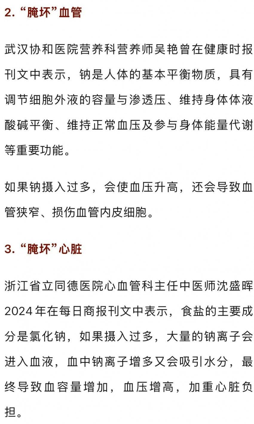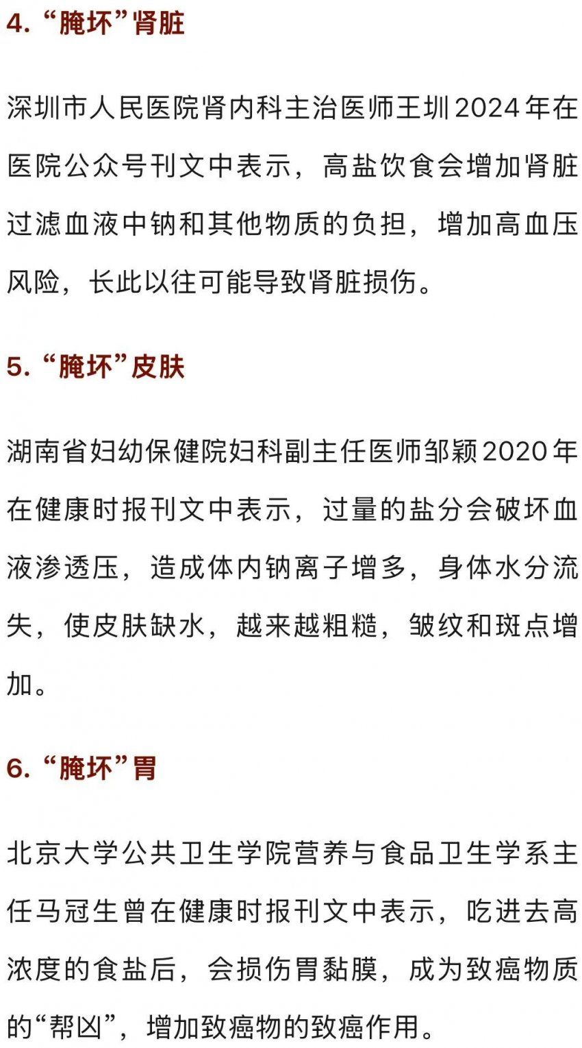 会“腌坏”身体多个器官