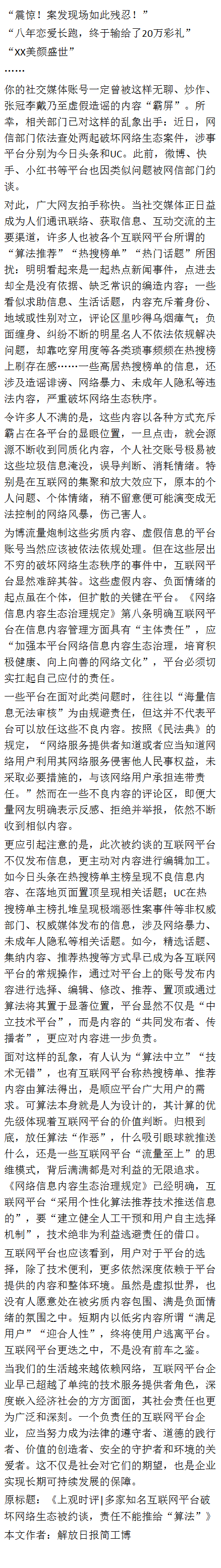 上观时评|多家知名互联网平台破坏网络生态被约谈,责任不能推给 ..