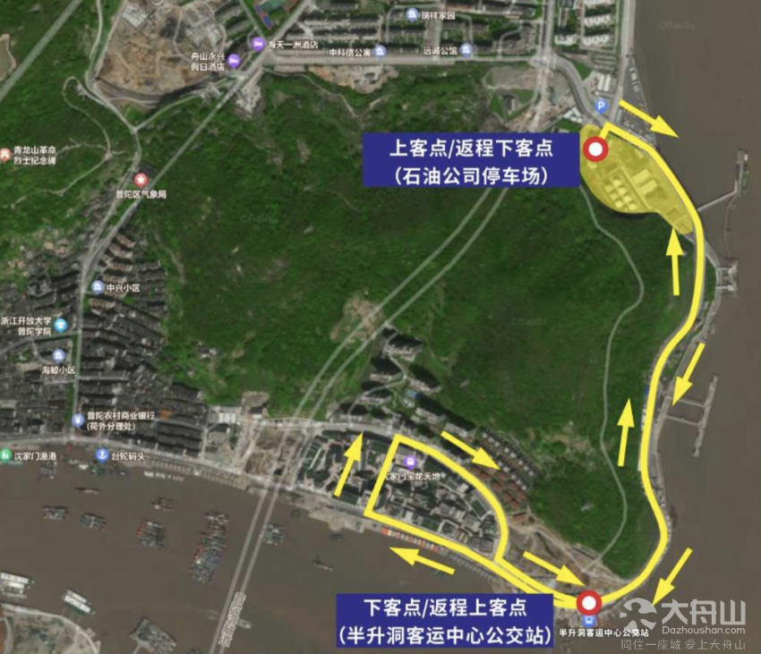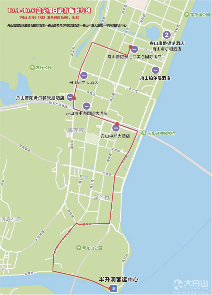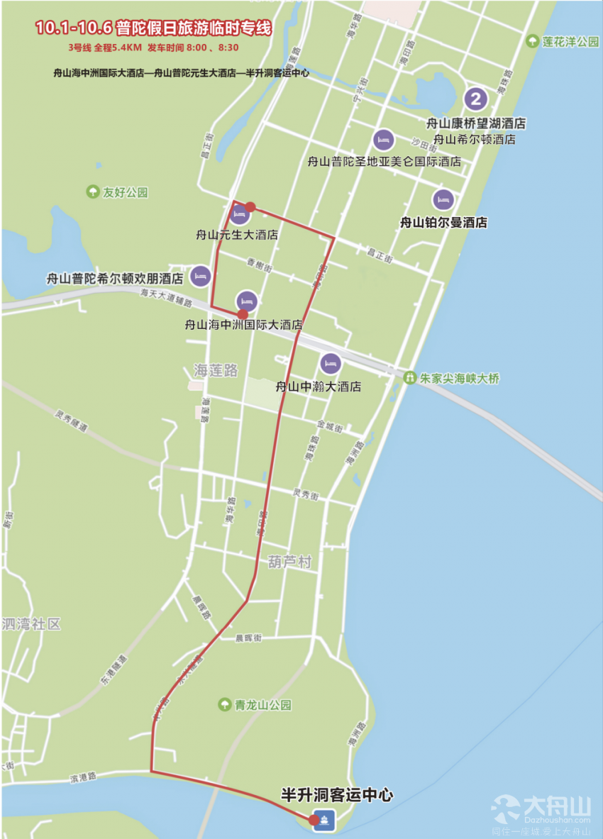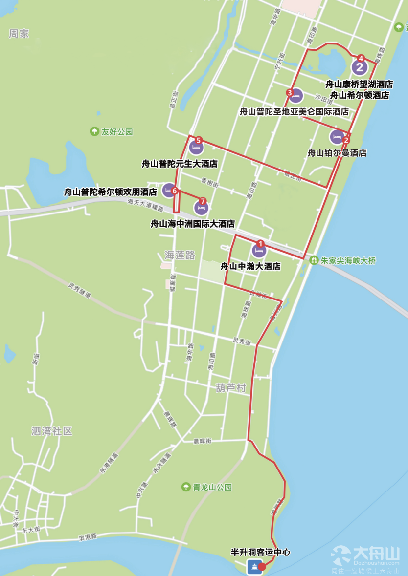 普陀假日旅游3号线:舟山海中洲国际大酒店-舟山元生大酒店-半升洞客运中心