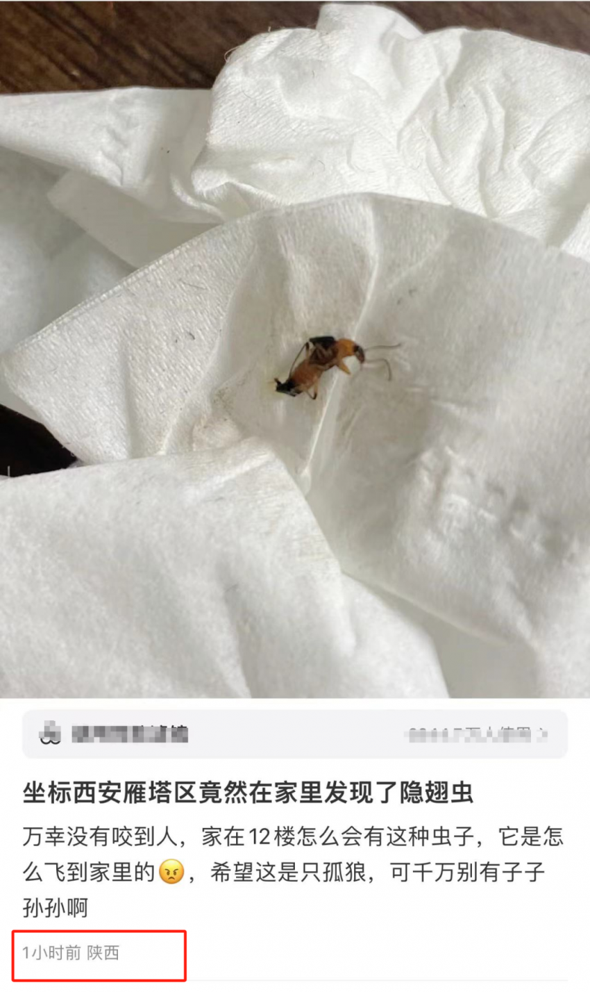 社交平台上,全国多地网友反映在家里看到了这种虫子。