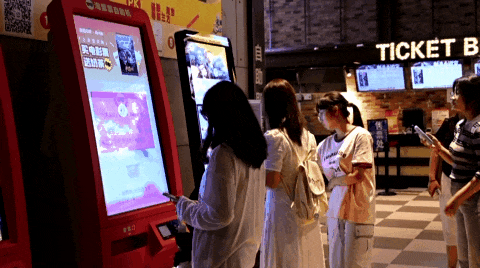 与亲友走进影院观影