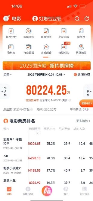 2025年国庆档电影总票房(含预售)突破8亿!