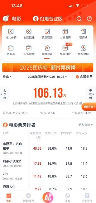 舟山区域国庆档电影总票房(含预售)破百万