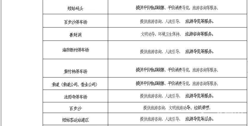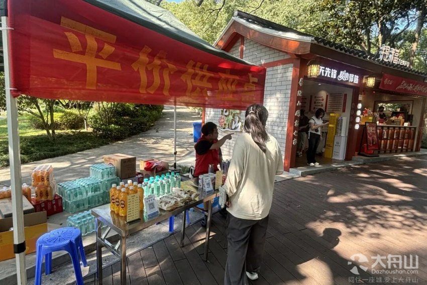 其中朱家尖禅意小镇会客厅旁、普陀山正山门广场、西天渡口、短姑码头、紫竹林停车场及普陀山索道的志愿服务点位还提供平价物品销售,矿泉水与自助售卖机同价,还提供面包、苏打饼干、八宝粥等简餐,所有商品明码标价,支持手机支付,方便游客就近购买。