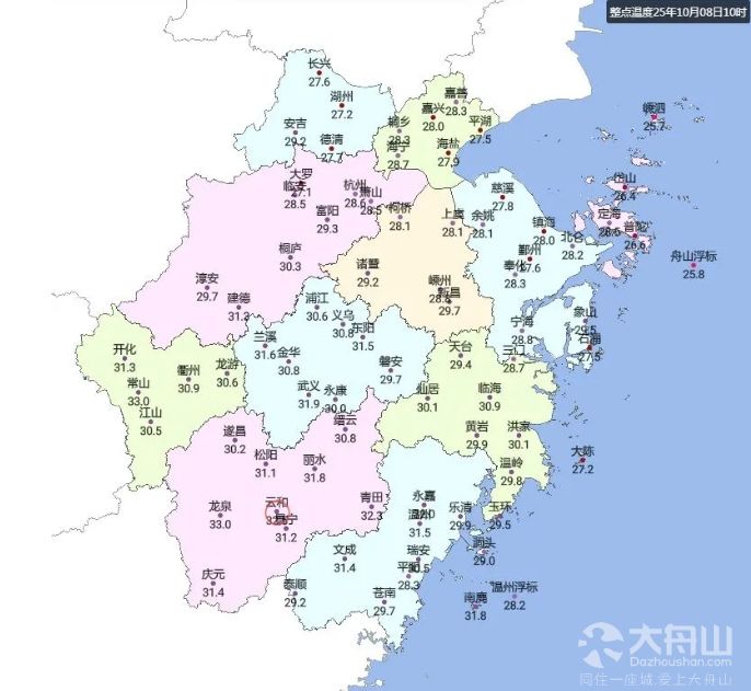 上午10点,浙北地区都在30度以下,全省大部地区和昨天同一时刻相比气温都有所下降,大家有觉得今天稍微凉快些了吗?