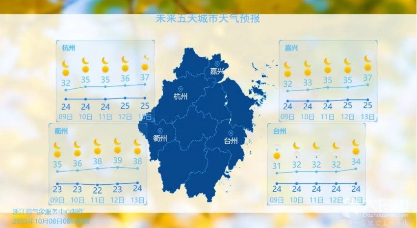 短期内高温有所缓和,浙西南部分地区仍有35-36度。