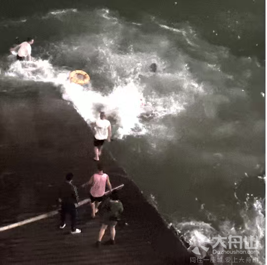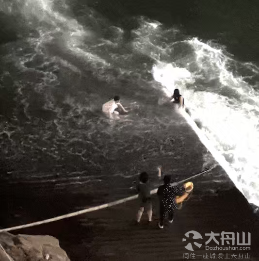 二人带着被救人员难以靠岸