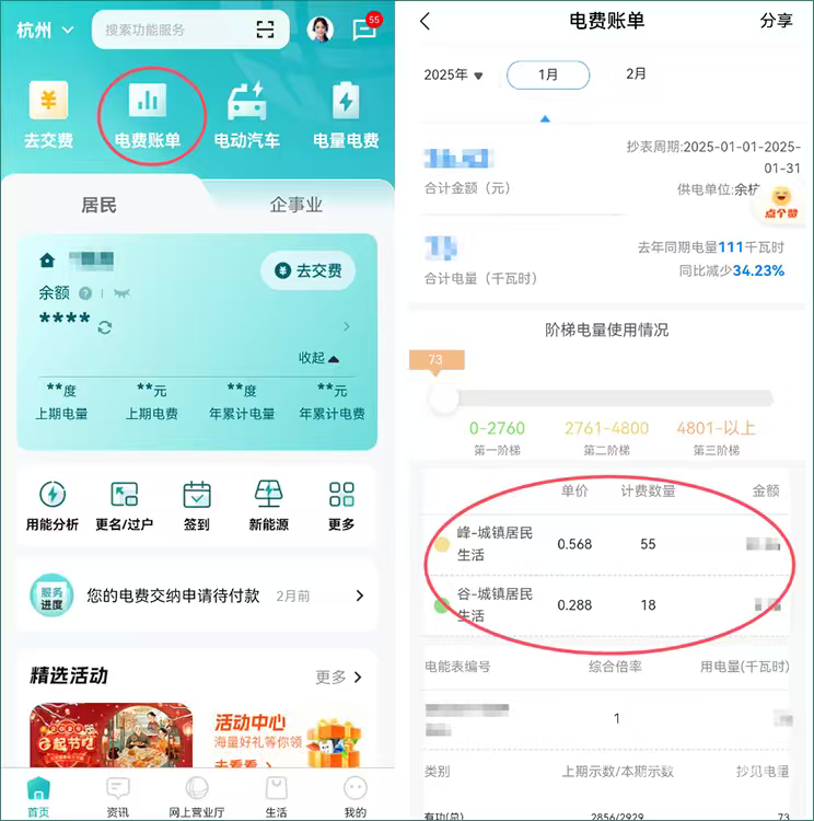 要是不确定的话,小伙伴们可以在网上国网App上的【电费账单】里查看历史用电数据,如果谷电比例超过总用电量11%,那么开通峰谷电肯定划算。