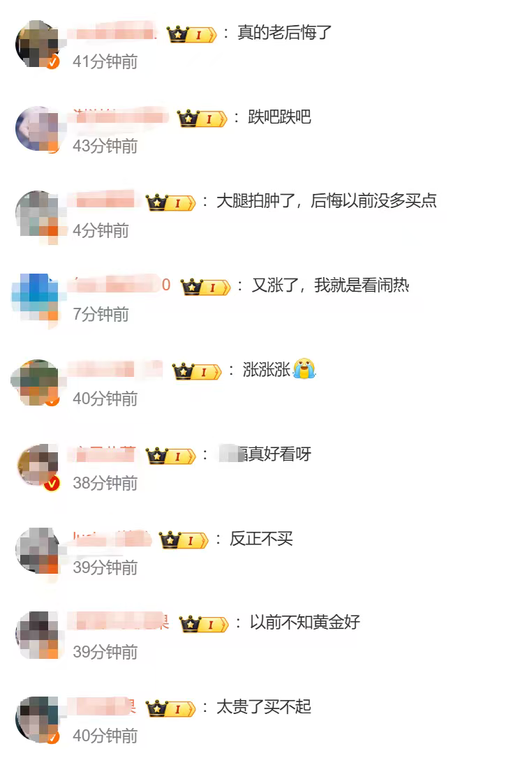 网友纷纷表示,“真的老后悔了”“以前不知黄金好”“太贵了买不起”。