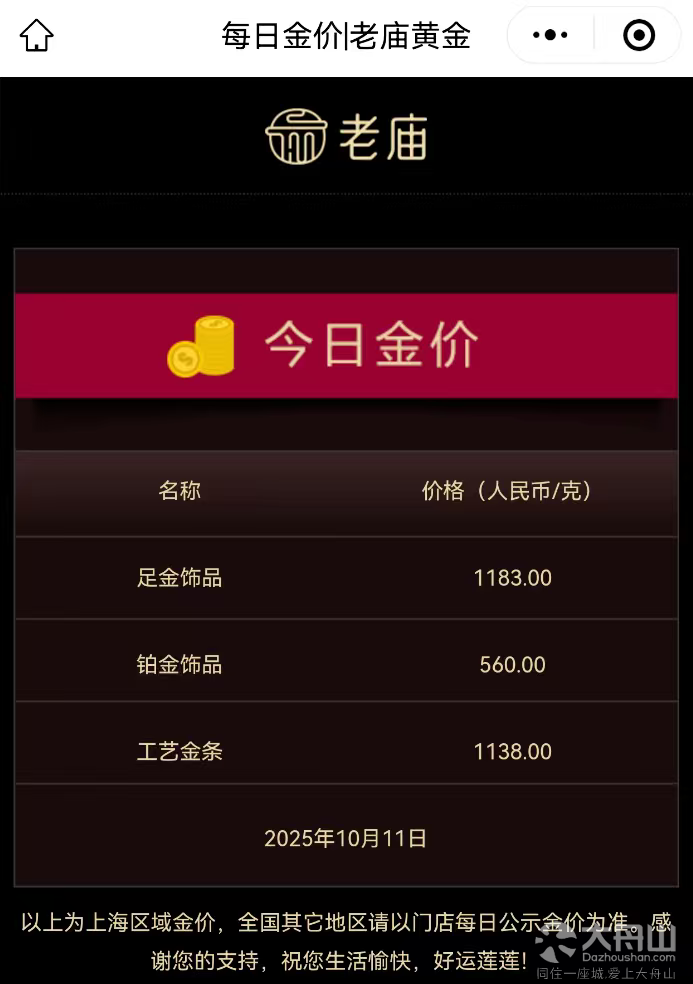 国际金价飙涨,带动国内品牌金饰价格同步走高。截至发稿,老庙黄金足金饰品报1183元/克,较上一日大涨18元/克。