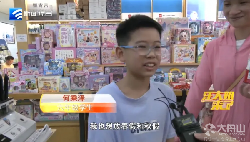 六年级学生 何乘泽:我想放春假和秋假,我觉得现在的学生实在是非常的累了,可以出去旅游,或者在家可以适当地看看电视放松一下心情。
