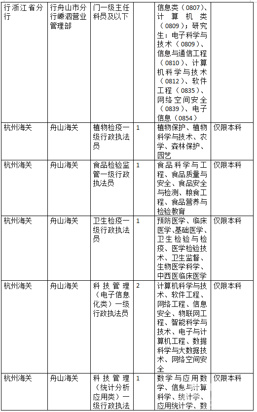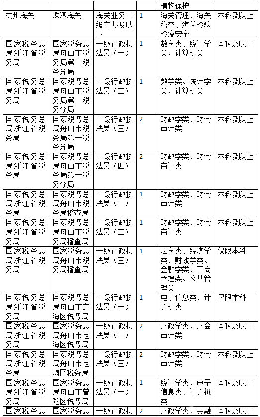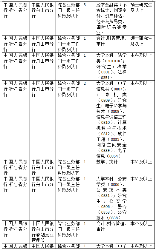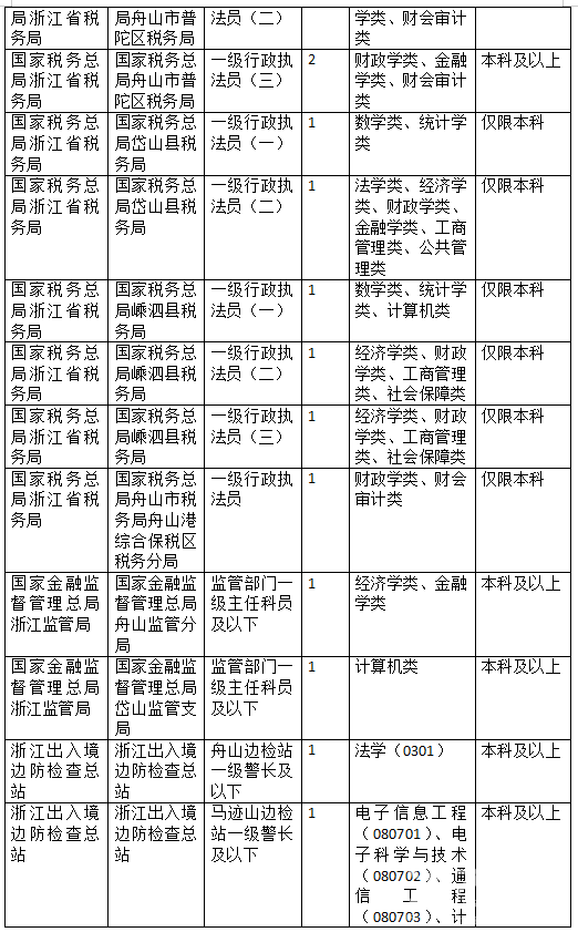舟山地区招考信息