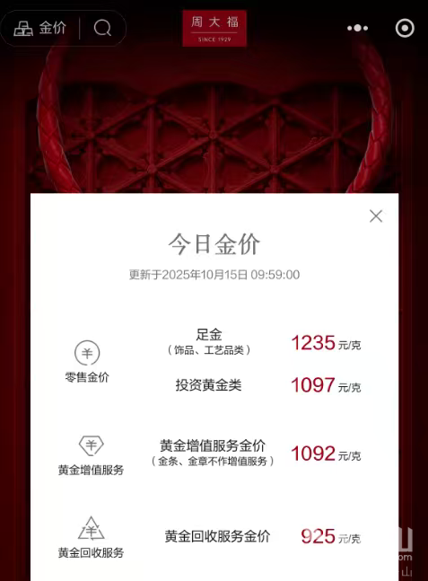 周大福今日金价截图