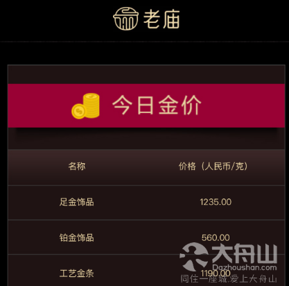 老庙黄金今日金价截图