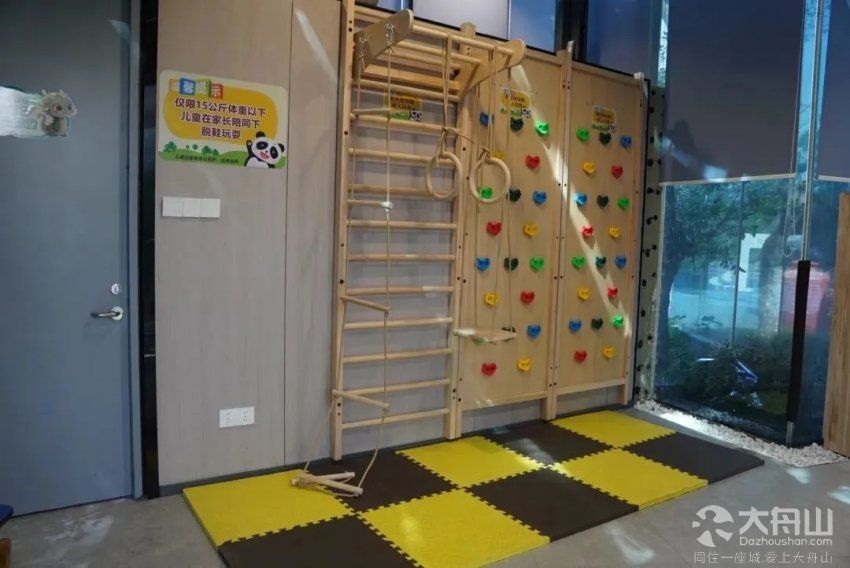 儿童游乐区里彩色攀爬架、秋千等无动力游乐设施一应俱全,布局上特别考虑了低龄儿童的使用需求,贴心配备软包保护攀爬安全。