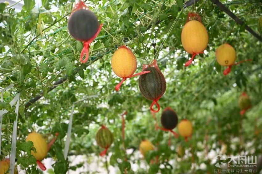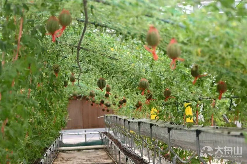 10月21日,位于东港街道南岙丁家山蔬菜基地的现代化温室大棚内,一批采用立体无土栽培技术种植的首茬“空中小飞瓜”即将迎来采摘期。