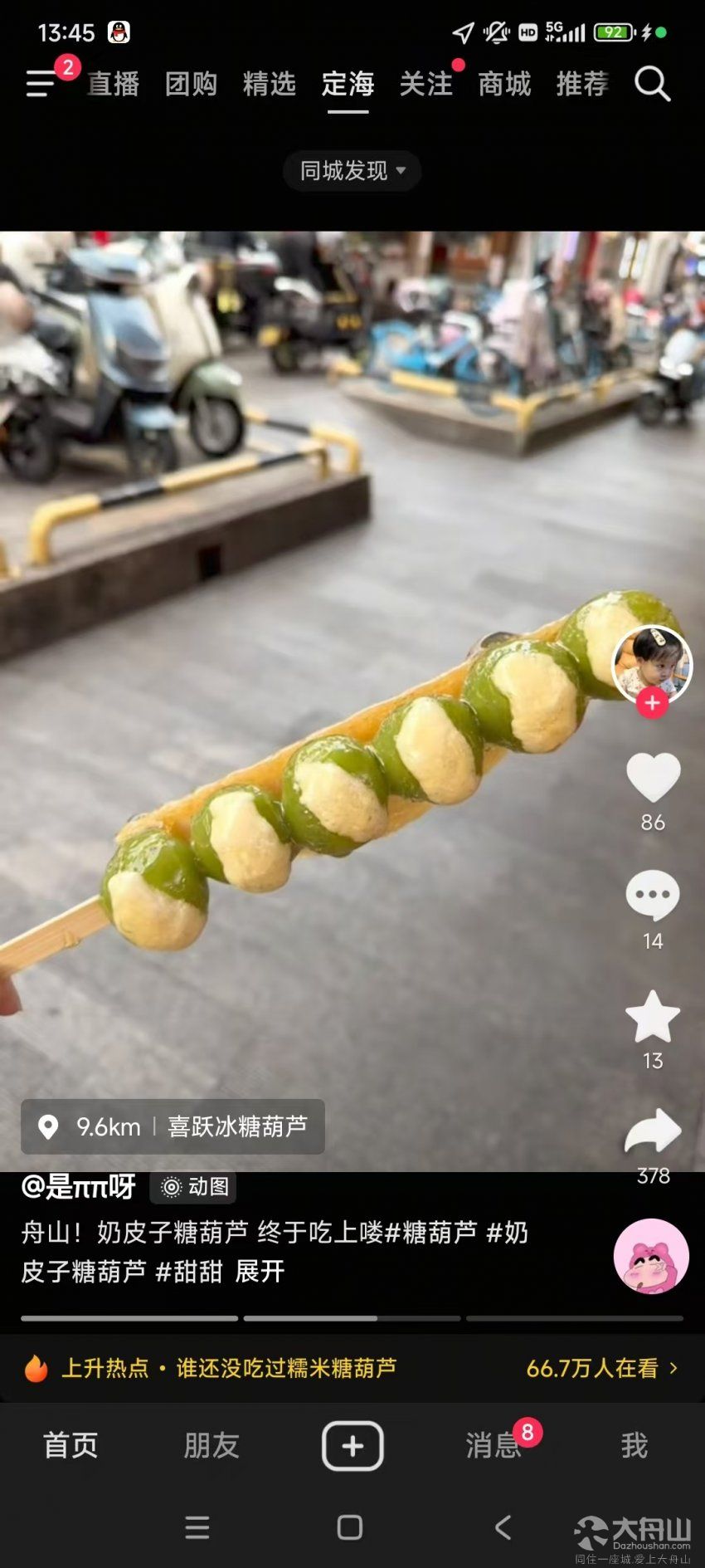 最近网上很火的奶皮子糖葫芦,没想到舟山也有了,有机会去尝尝 z P@\rZ@4