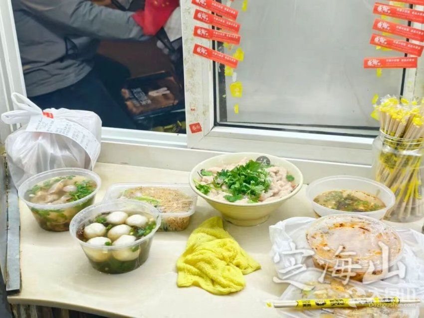 “老板,瘦肉丸和炒米面,照旧!”
