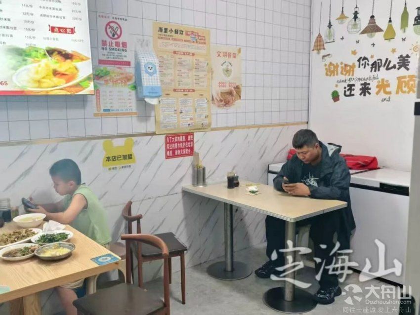 老板娘看着店里吃饭的顾客