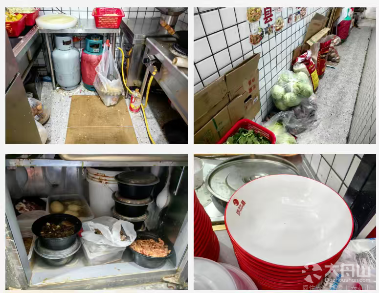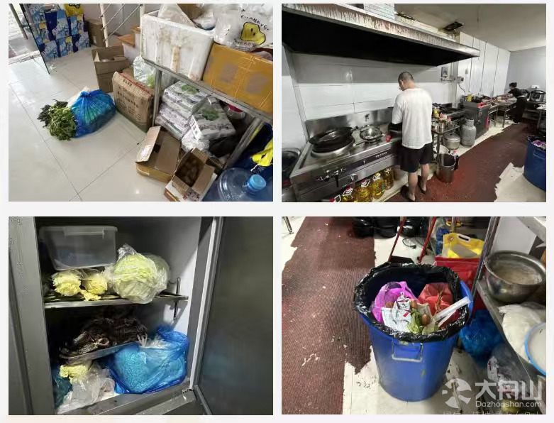 1、后厨环境不洁,地面有大量食物残渣、积垢及纸板等废弃物。