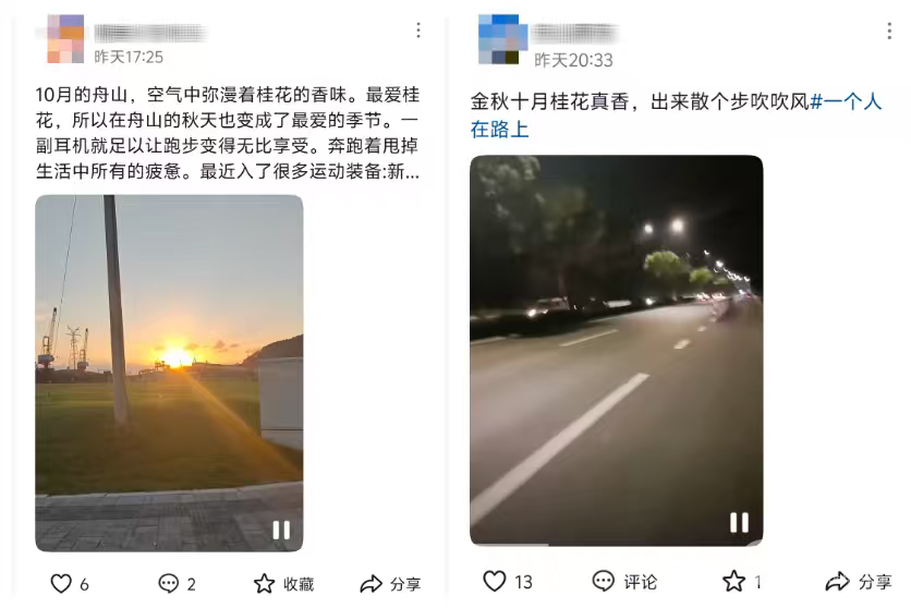 “印象中,去年这时候,桂花已经开得很好了,今年推迟了蛮久的。”正在小区散步的居民表示,“今天也是突然闻到了香味,蛮惊喜的。