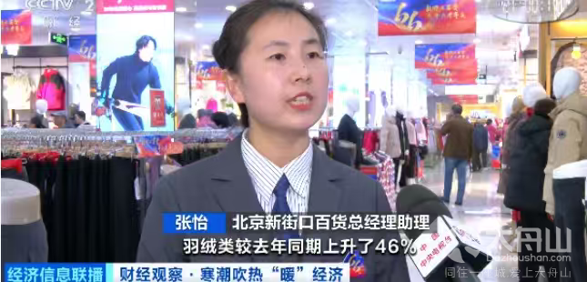 北京新街口百货总经理助理张怡:在16日到23日寒潮期间,羽绒类较去年同期上升46%,环比增长150%。羊绒、羊毛类较去年同期增长17%,环比增长74%。