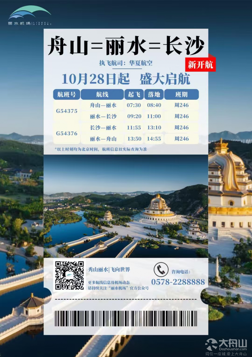 10月28日,由华夏航空执飞的舟山往返丽水航线正式通航。至此,舟山普陀山国际机场已正式打通与衢州、温州、丽水三市的空中通道,成为浙江省内首家联通省内3城的机场。
