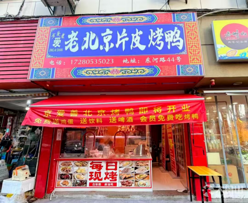 网络平台、名称:美团【京爱善·老北京片皮烤鸭(普陀区店)】,饿了么【京爱善·老北京片皮烤鸭(东河店)】