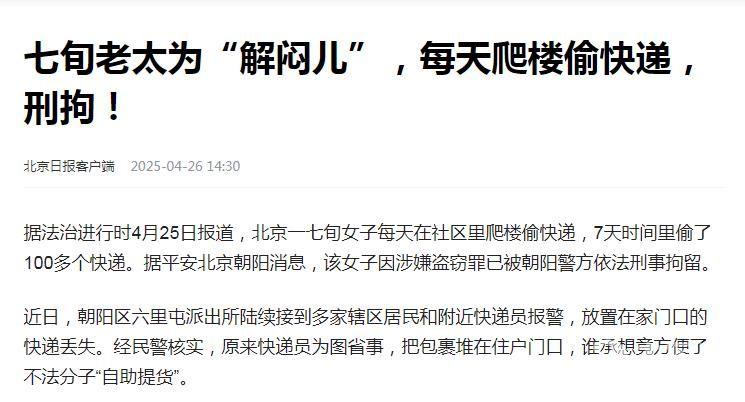 老人7天偷100多个快递 或被判定盗窃罪可“刑”