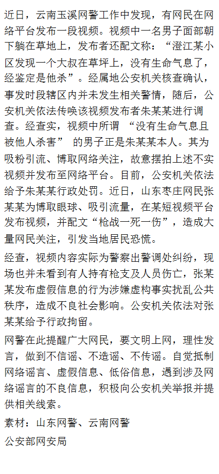 发生“命案”?依法查处造谣者