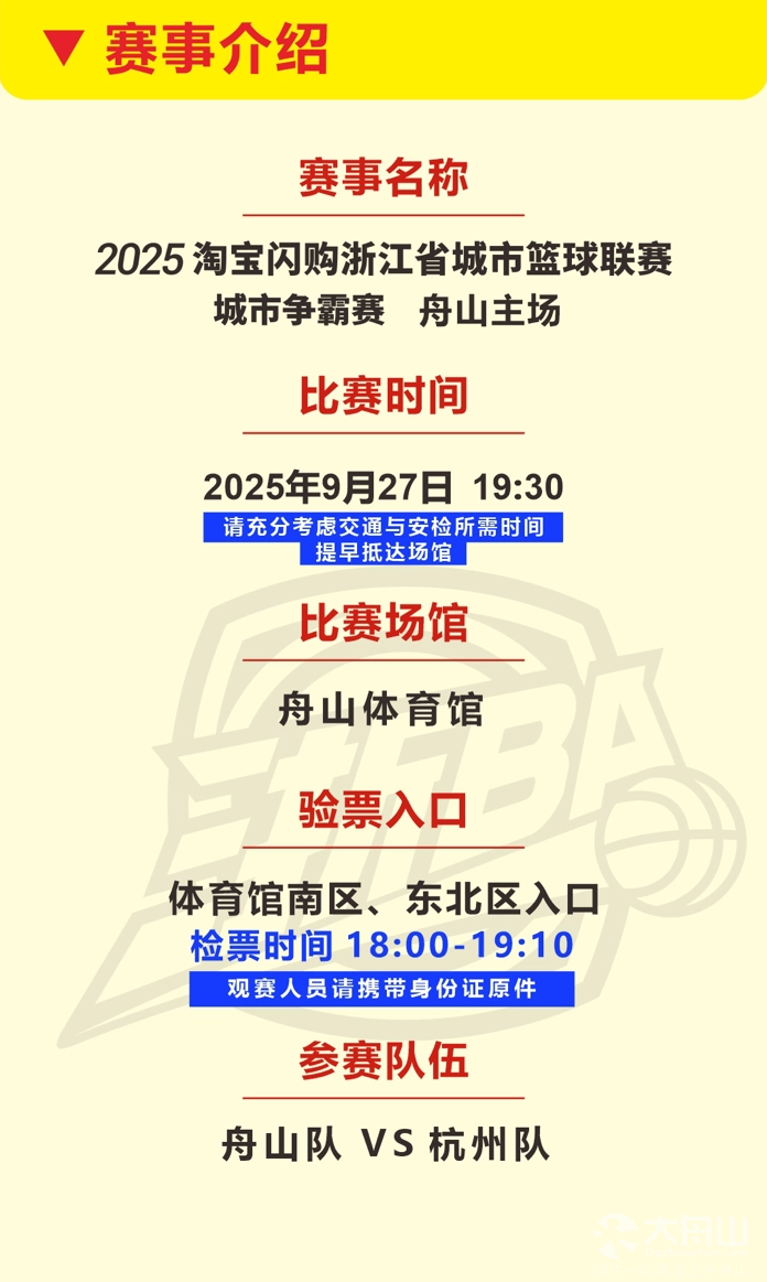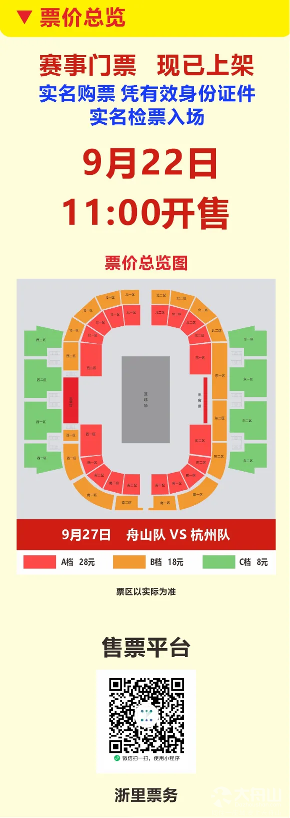 “浙BA”抢票!舟山队vs杭州队,9月22日11:00准时开抢!