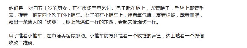几年前,在我们舟山白泉,我们舟山白泉的一个城管就揭穿了职业乞丐的把戏,