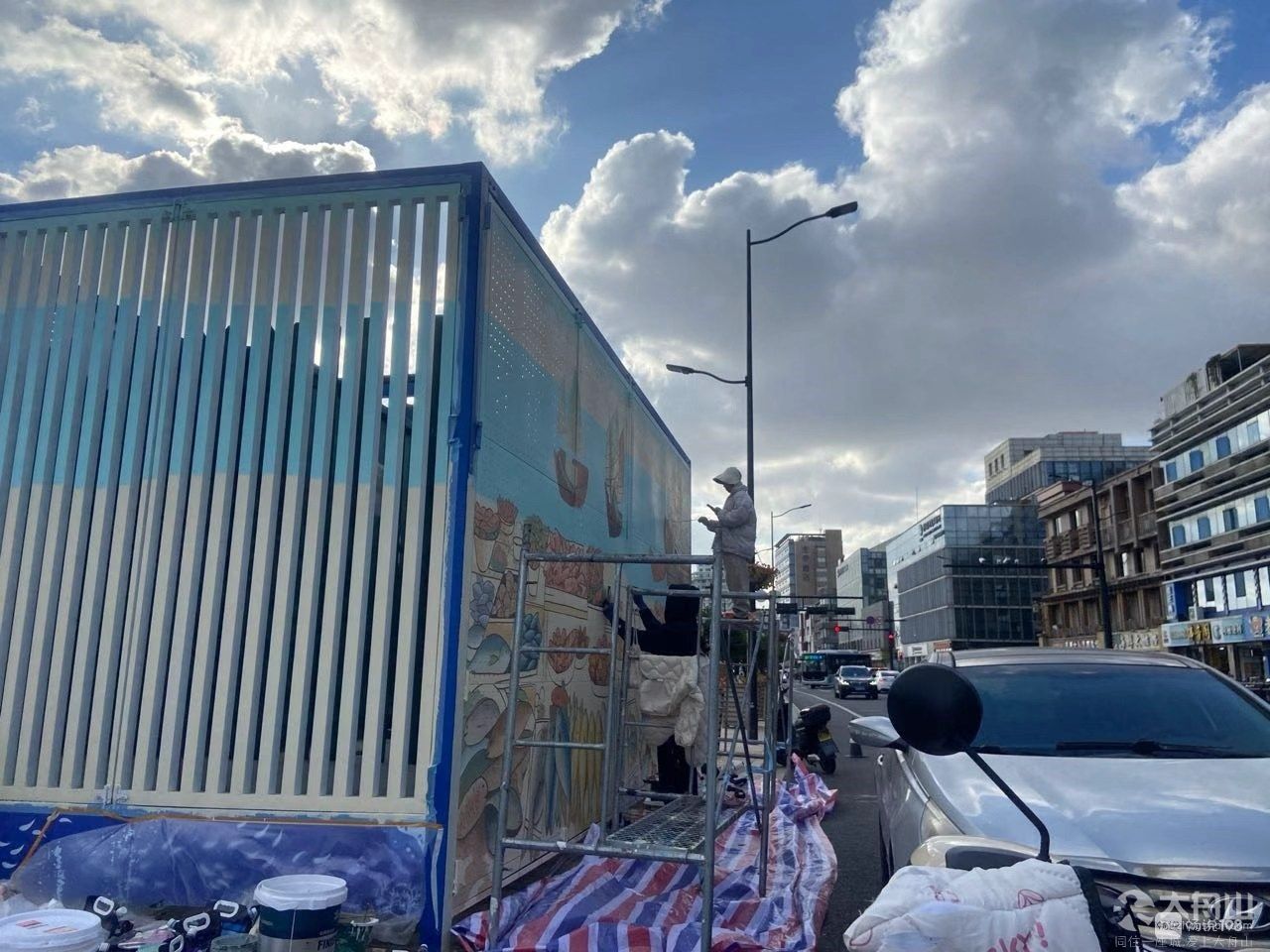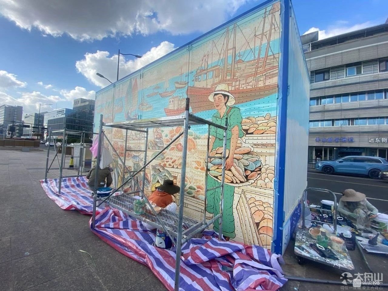沈家门滨港路要变样了,好多师傅都在那作画!